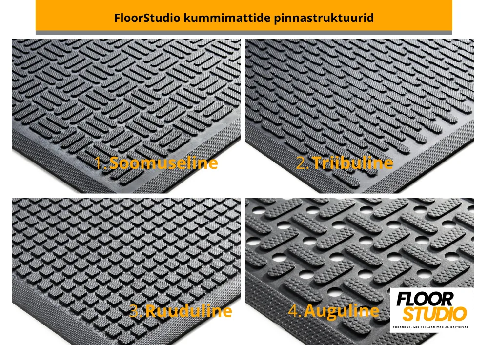 Kummimattide erinevad pinnastruktuurid